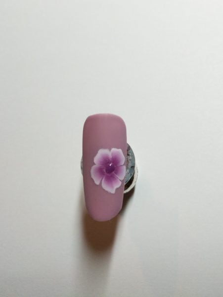 Prepare your nail as usual for your Gelish application. Apply your foundation, two coats of Gelish in Merci Bouquet and finish with a matte topcoat, curing all applications for the advised time.