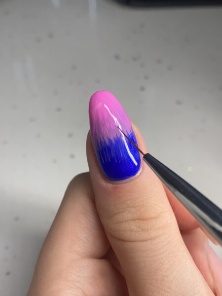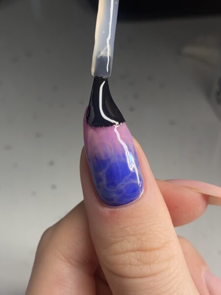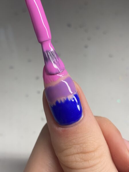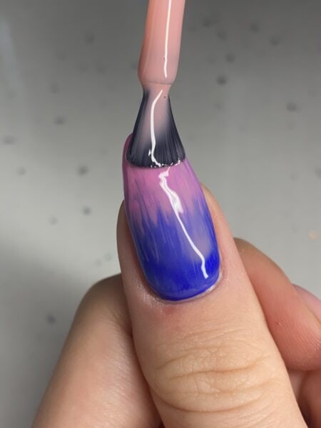 Continue blending the shades in an upward brush stroke motion to create an ombré effect. Once you are happy with the blend, cure for 60 seconds.