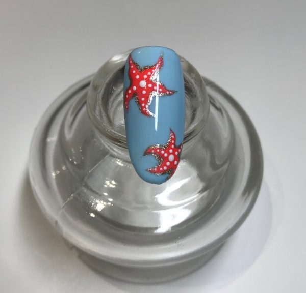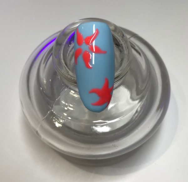 Prep the nail ready for a Gelish service. Paint a vibrant colour that will contrast with your starfish. Here, Gelish Not So Prince Charming was used.