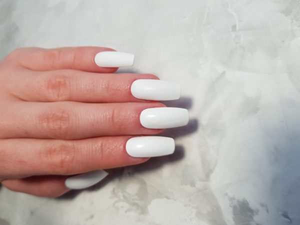 Prepare the nails for gel polish application. Apply a colour coat of white gel polish. Cure and wipe off the inhibition layer as the inks need to be applied to an un-sticky surface.