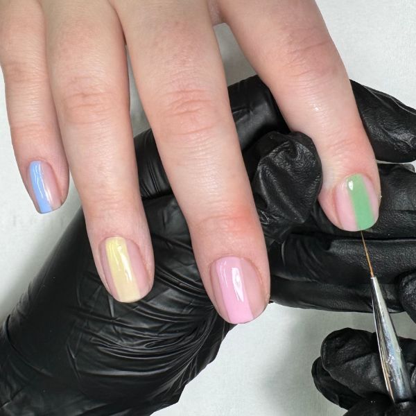 Repeat this step on all 10 nails using various pastel shades. I used OPI GelColor shades, Mod About You, Apricot AF, *Verified*, $elf Made and Sickeningly Sweet.