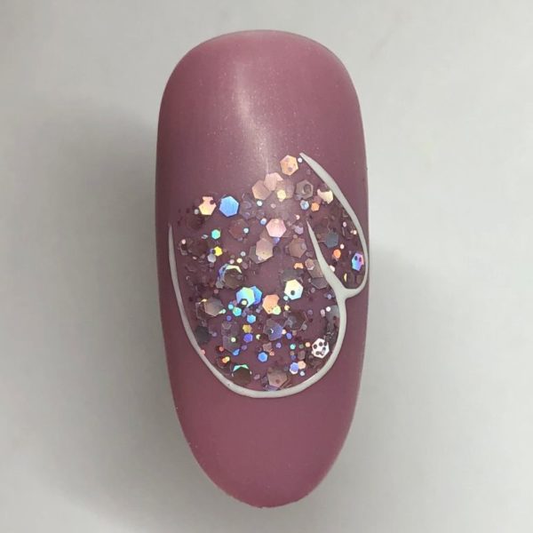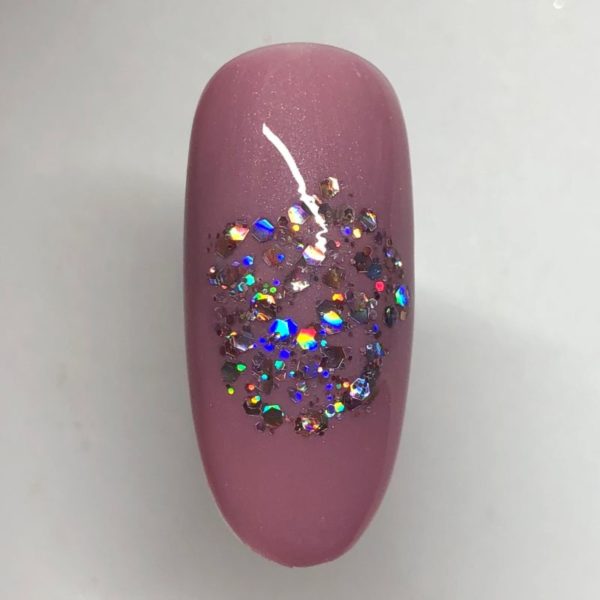 Mix Lecenté Fantasy Super Holographic Multi Glitz Nail Glitter with Lecenté Smooth It! to a 1:3 ratio. Paint a glove shape with the mix and cure.