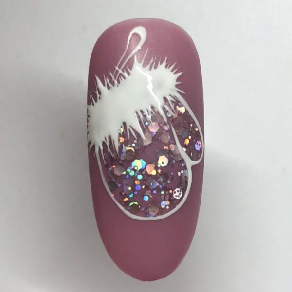 Paint a mitten handle with the brush and white gel polish, then cure. Apply matte top coat and cure.