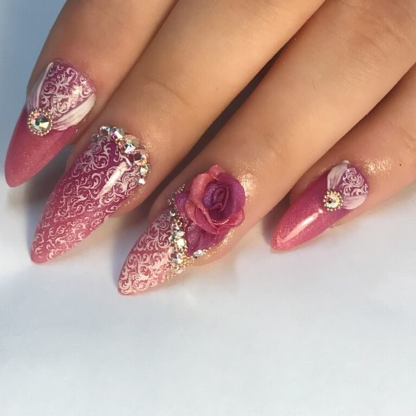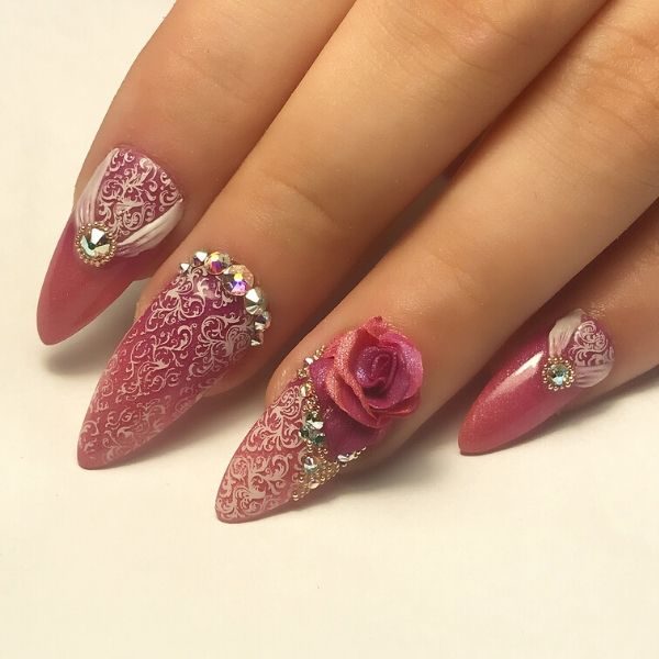 Mixed media rose nail design