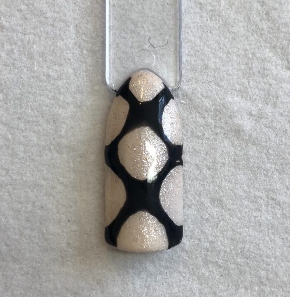 Once you have your base, add more gel to thicken your lines and soften your corners to achieve a honeycomb effect. Cure in the lamp for 60 seconds. Press All That Jazz Gold Foil into the gel.