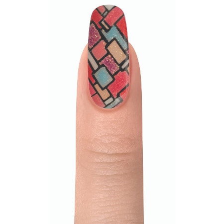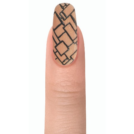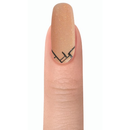 With a Micro Striper Brush and Art Form Gel shade, Essential Black, create diagonal lines starting from the cuticle area.
