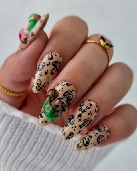 Mushroom nail art: 35 fairytale fungi looks that are trending this autumn