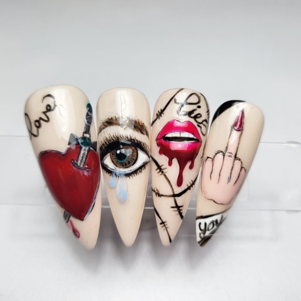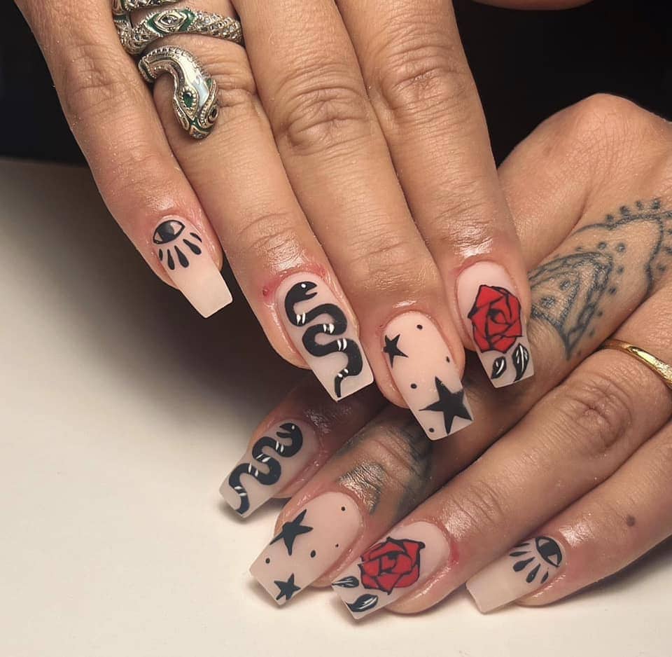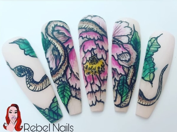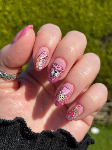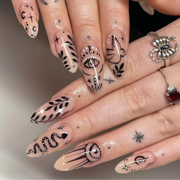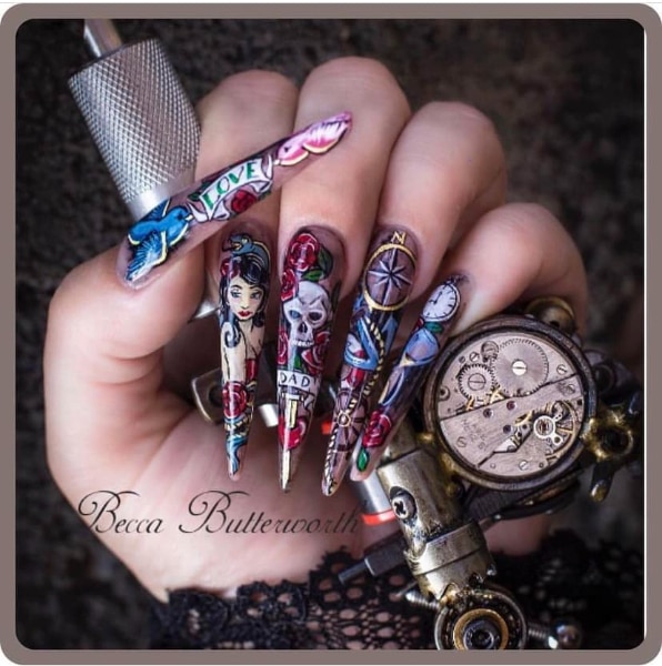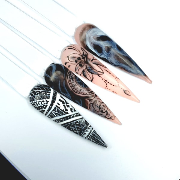 Check out entries to the 7 June 2023 nail art challenge from Scratch, in which techs were tasked with creating nail designs with the theme: tattoo nails.