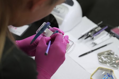 The Scratch Stars Awards event is in its 13th year, and recognises exceptional nail technicians, teams, educators and salons across 18 categories. Eight of these categories require a practical assessment, and a task was emailed to finalists one month prior to the competition day. Each hour-long practical session was followed by a short interview, where finalists, in turn, answered three questions from judges. These questions instigated responses to business scenarios and tested their industry know-how, in order to find the best all-round nail tech in each category.
