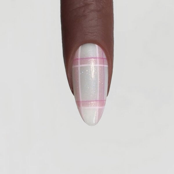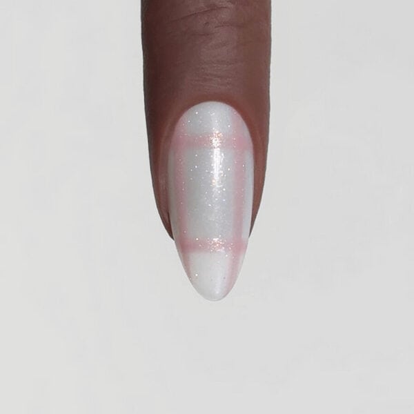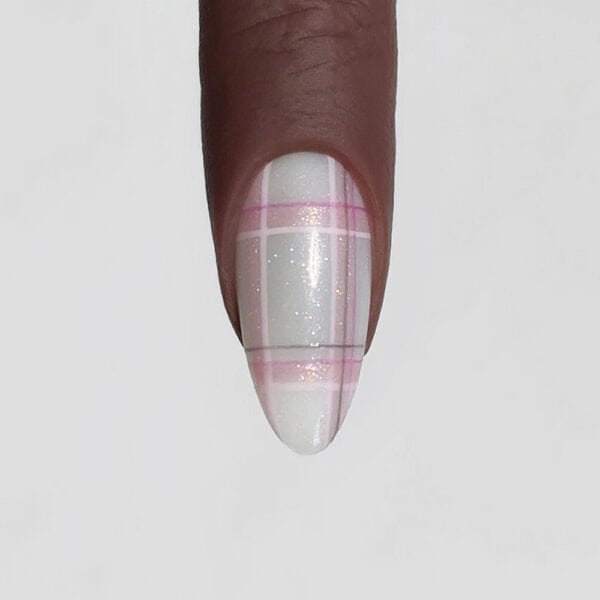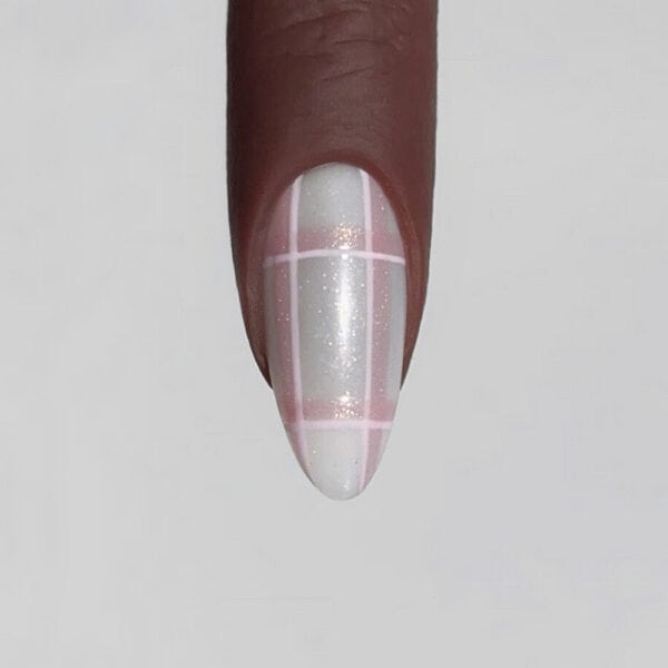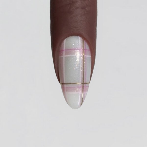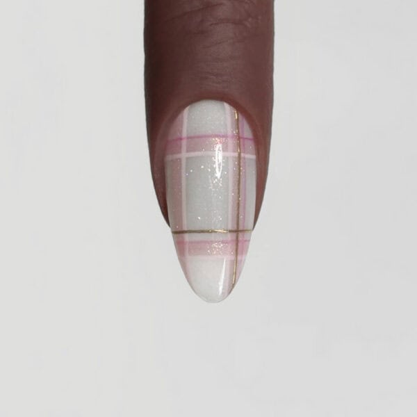 Team Lecenté is behind this pretty, glittering plaid nail design, and shares how to recreate it below…
