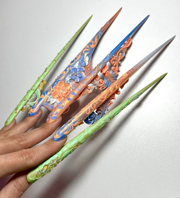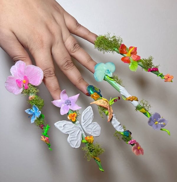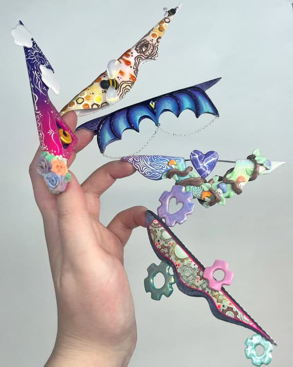 Nails must be sculpted and feature 3D elements and hand-painted nail art. Embellishments and pre-made products can be used, but make up no more than 25% of the design. For the video element, a short story should be shared about the nail design: what inspired it and how it was created.