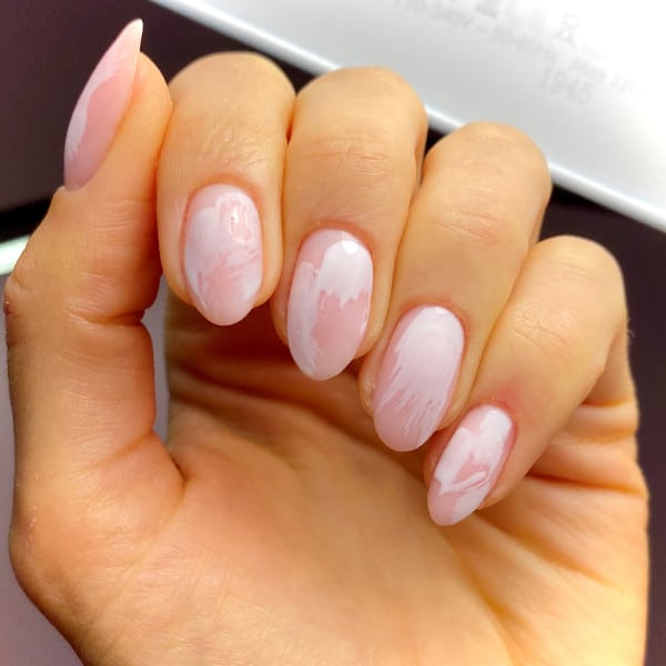 Using GELLUX Purely White, swipe the brush quickly onto each nail to create a paint stroke effect, and cure for 30 seconds.