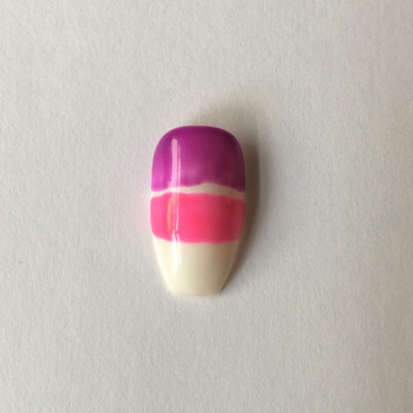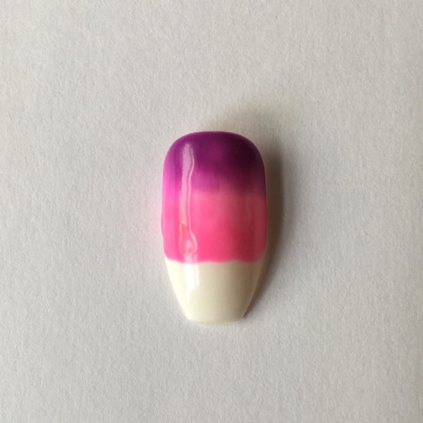 Blend with the pink as before (some people prefer to blend with a sponge) and then cure for 30 seconds in the OPI LG Gel curing lamp.