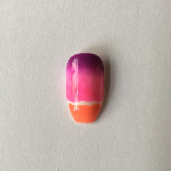 Gently blend the two colours with feather light brush stokes using the fine brush from the Artist Series nail art brush set.