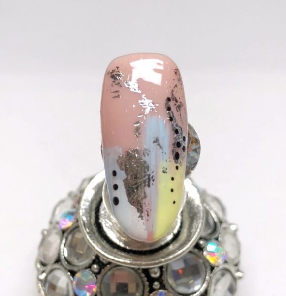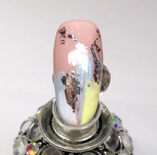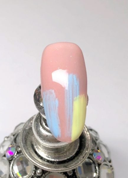 Using the same technique and brush using Gelish Art Form Paint in Pastel Yellow.