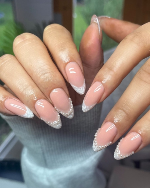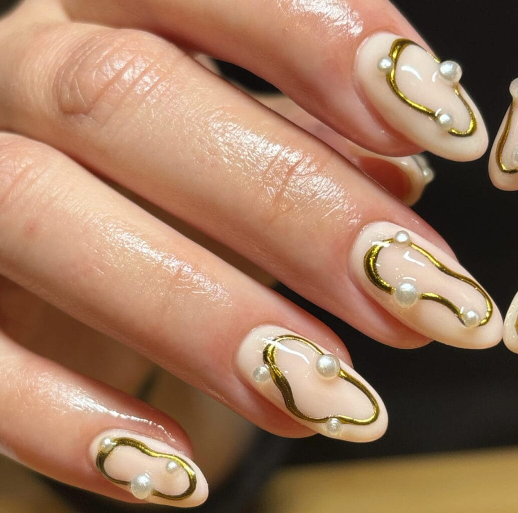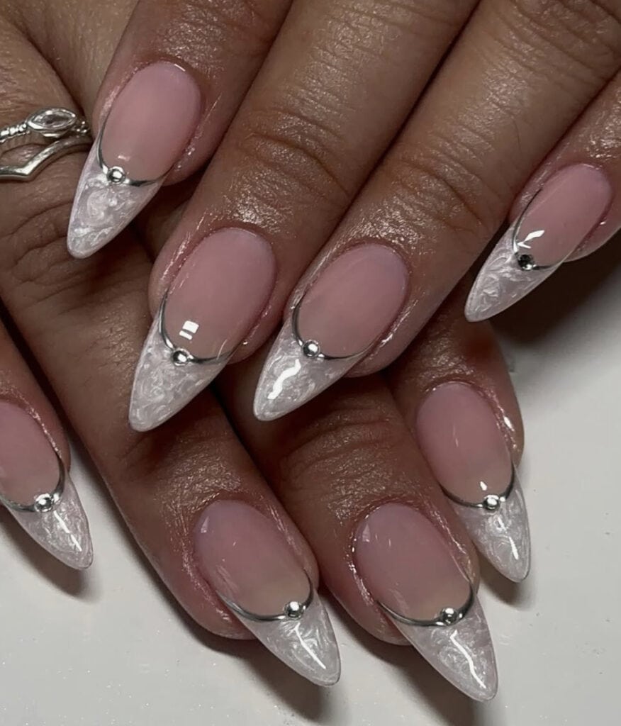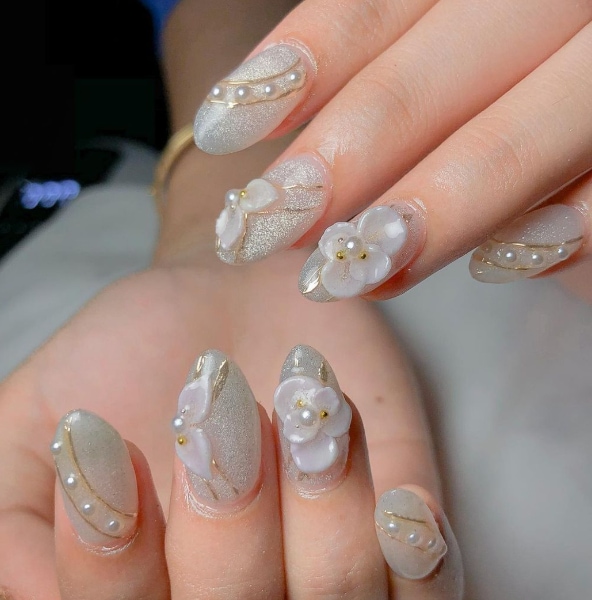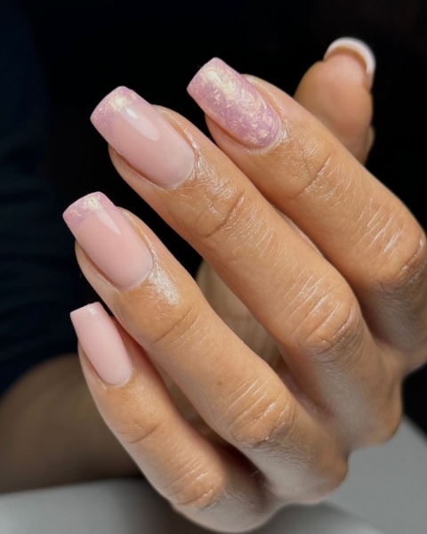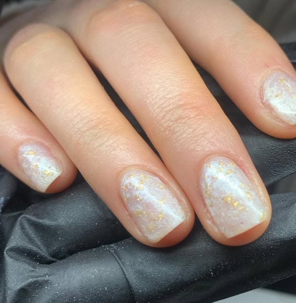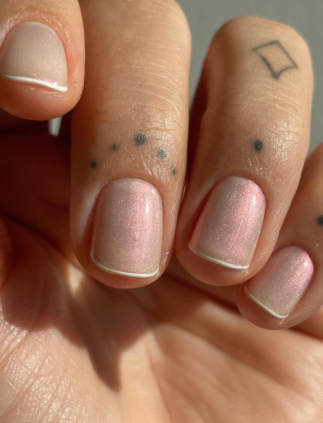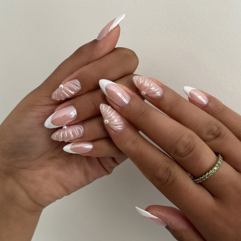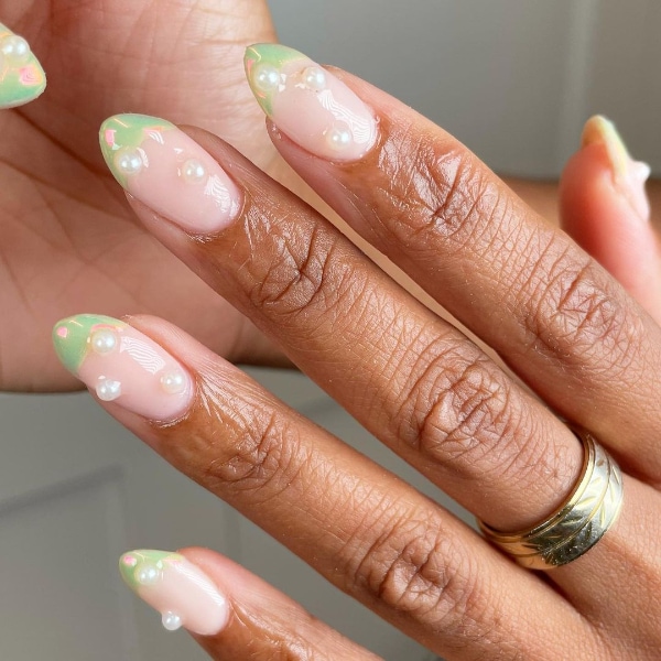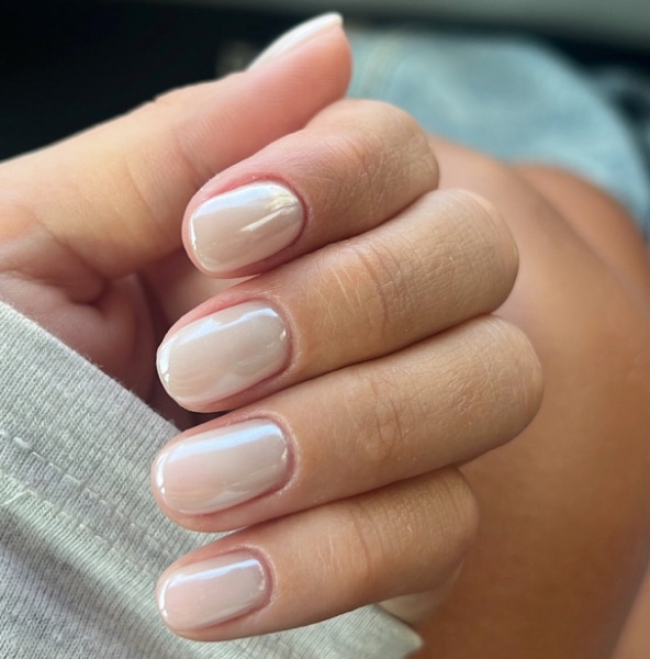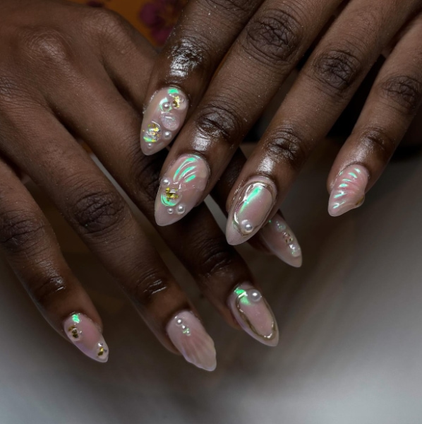 Elevate spring nail styling with a touch of pearlescent elegance.