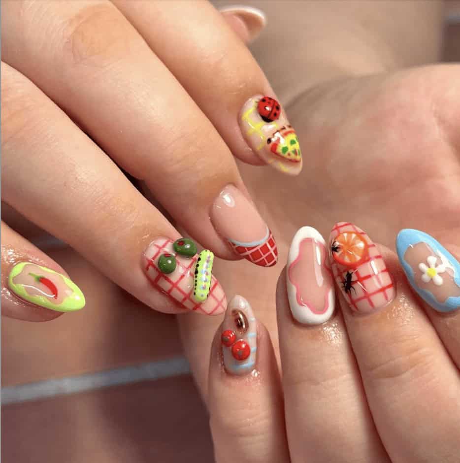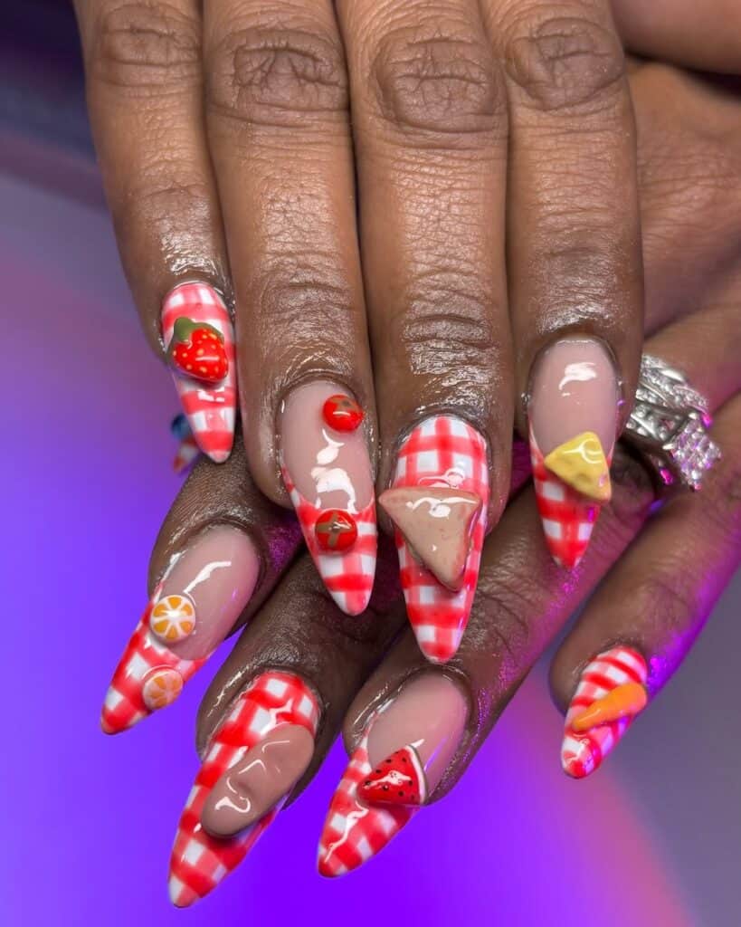 It’s officially picnic season! Nail enthusiasts are expressing their love for the summer activity with themed nail art, featuring gingham picnic blanket patterns, delicious spreads and even bug friends.