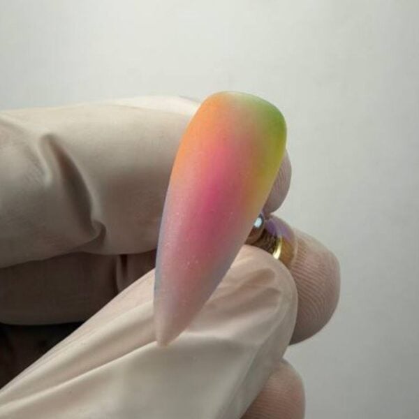 Award-winning nail artist, Karyna Kyliushyk, crafts a perfect popsicle-toned pigment nail look…