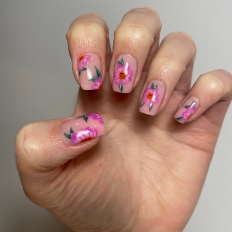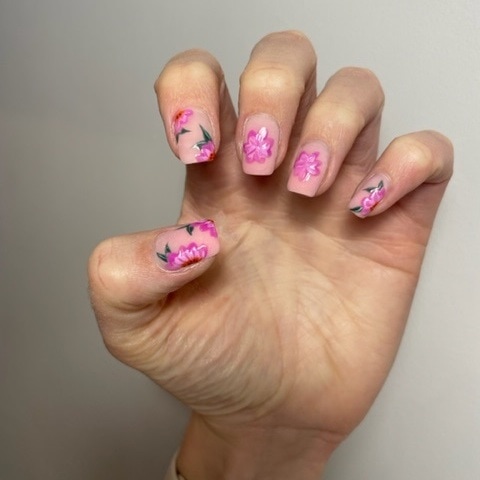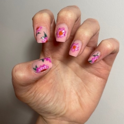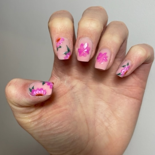 Pink flower nails