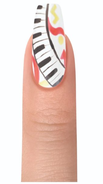 Do you have music mad clients? Recreate this piano-inspired artwork using Gelish’s Rocketman collection!
