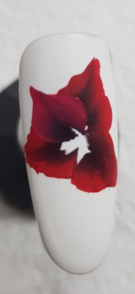 Next, mix the black and red with a tiny bit of white and create three more petals within the first three.