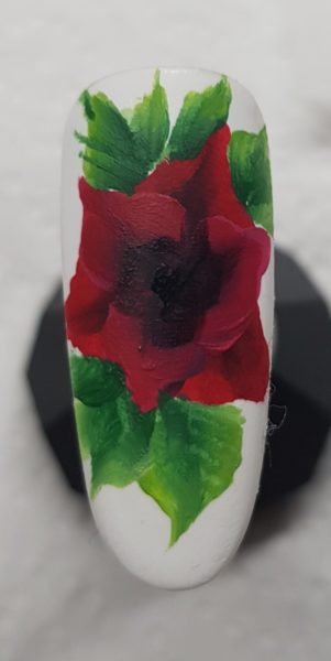Scratch Stars One Stroke Artist of the Year 2018 & 2019 winner, Rebecca Isaac, used the one-stroke technique to create the crimson petals of this poinsettia flower.
