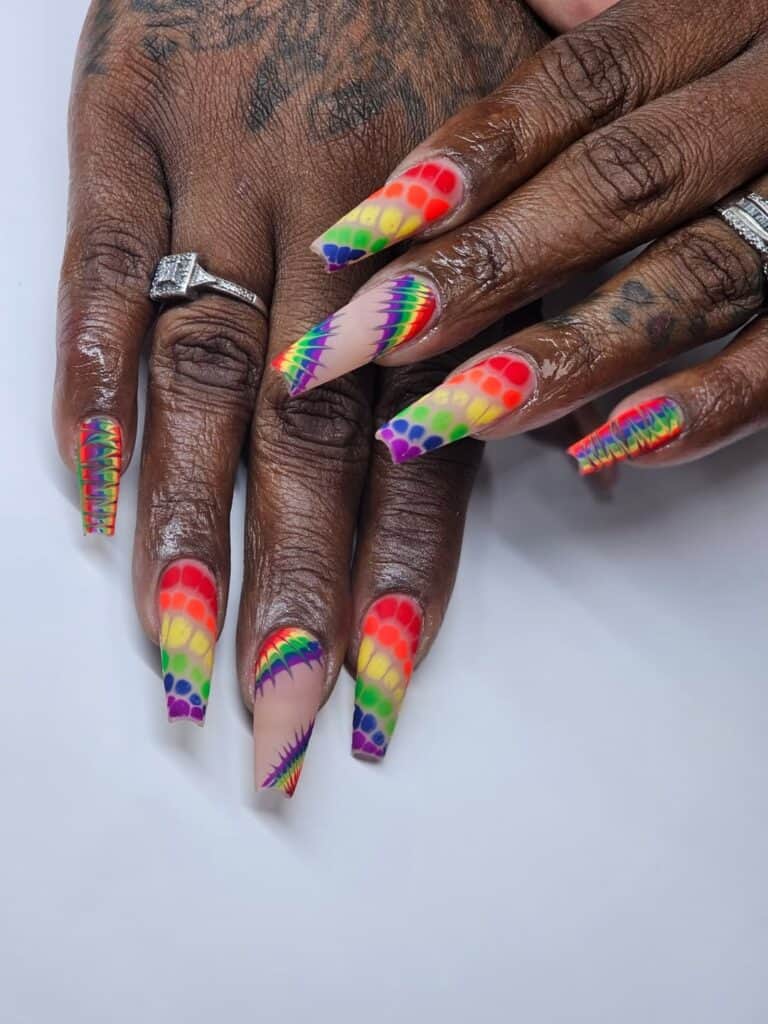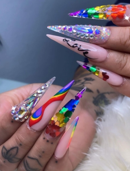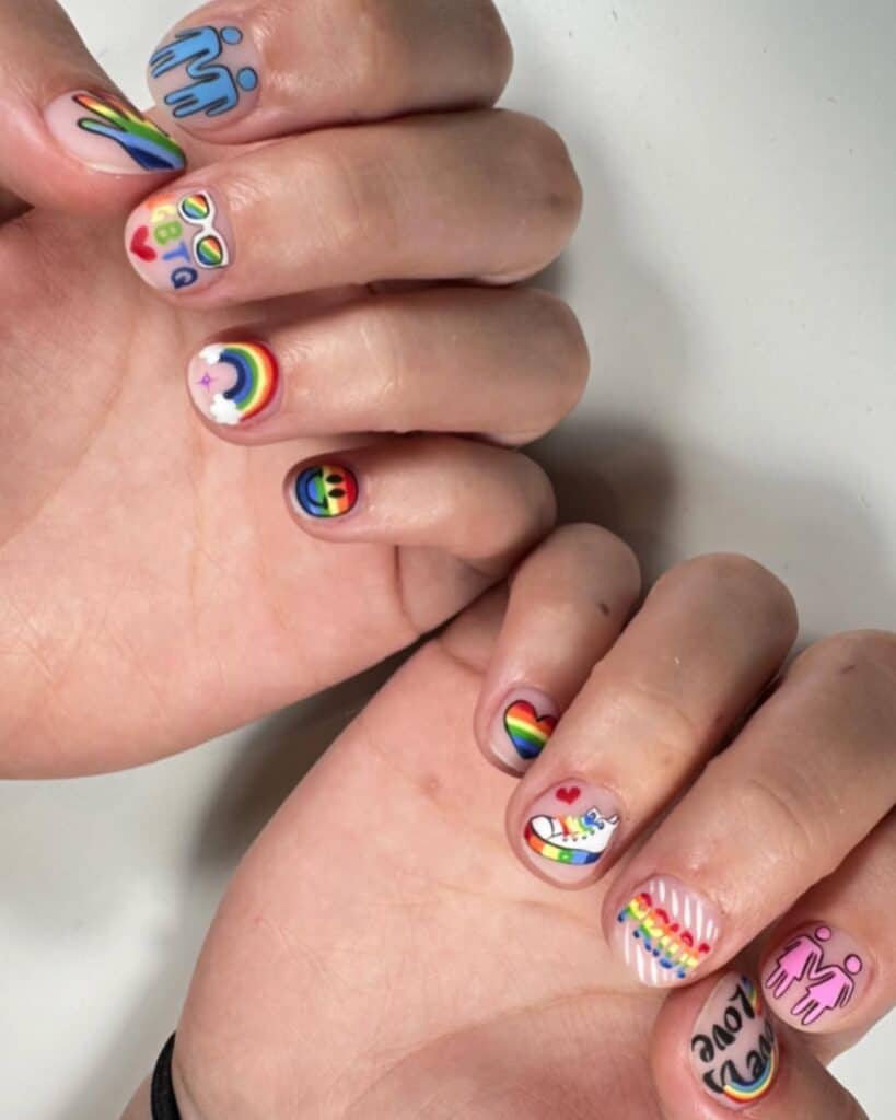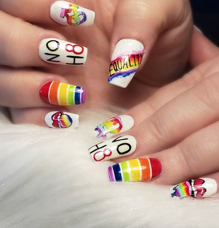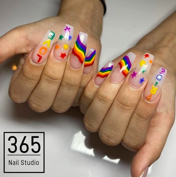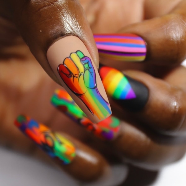 Check out themed designs by nail artists on Instagram incorporating the rainbow Pride flag and other inclusivity symbols…