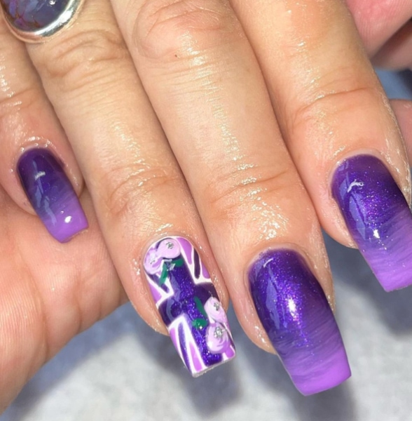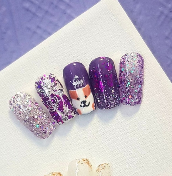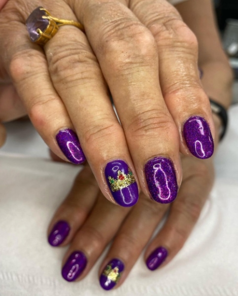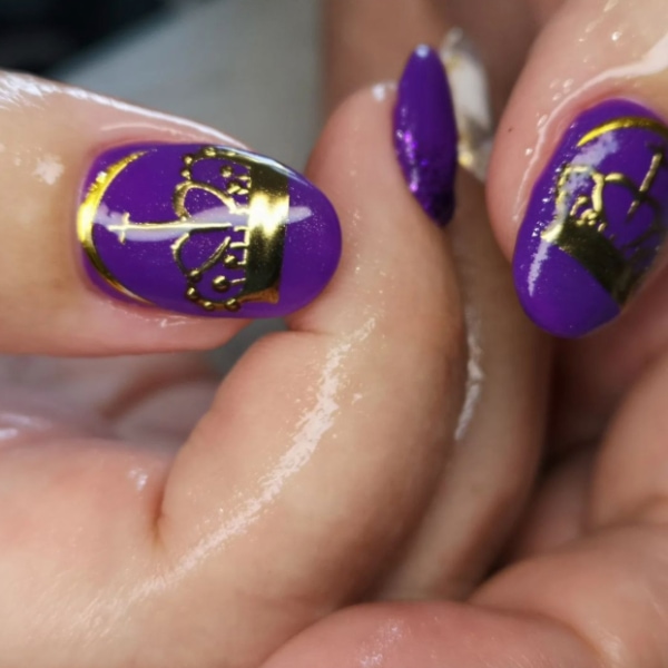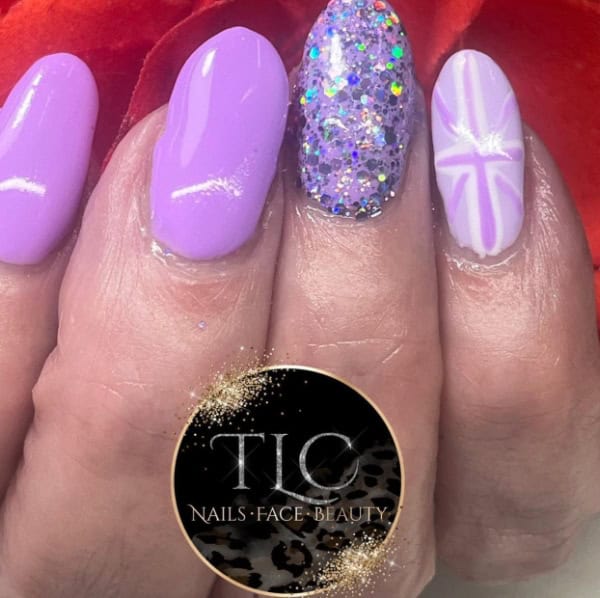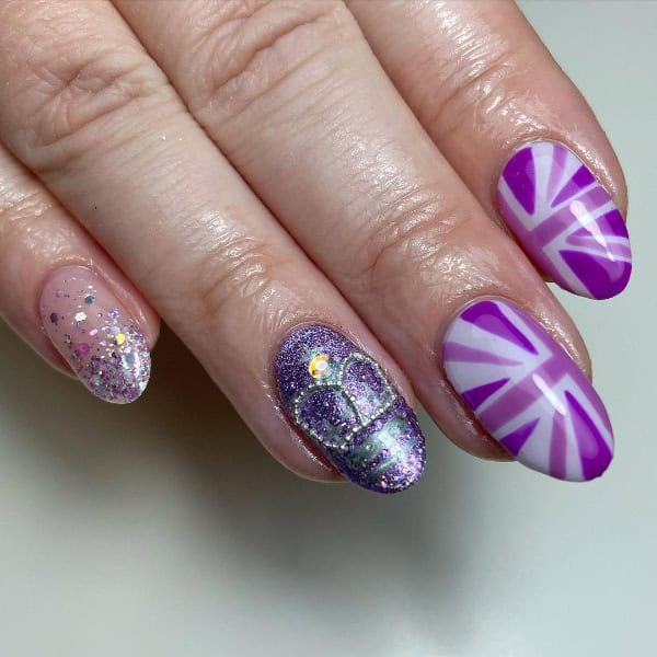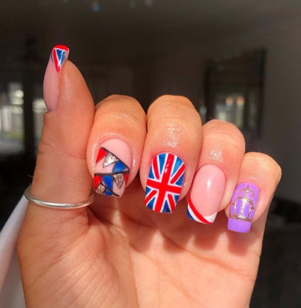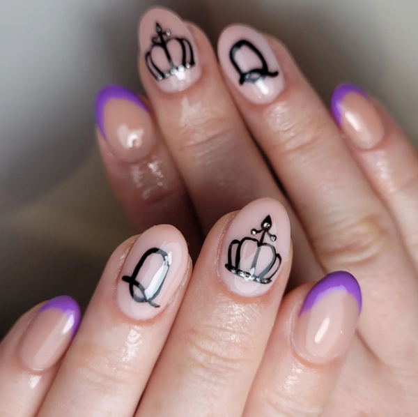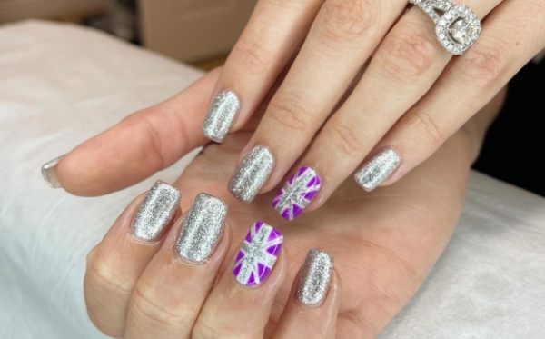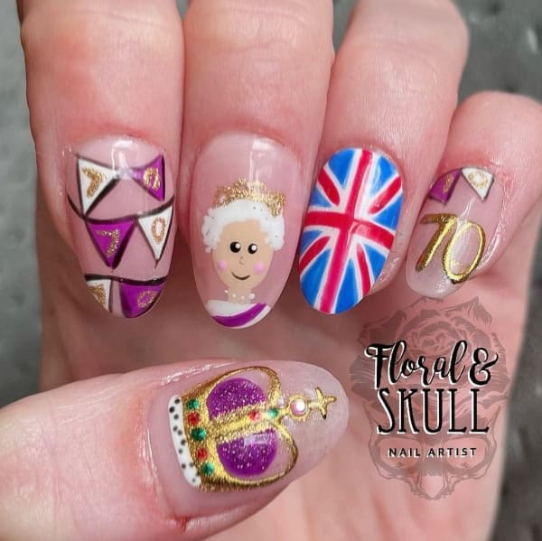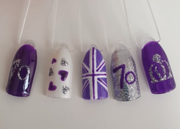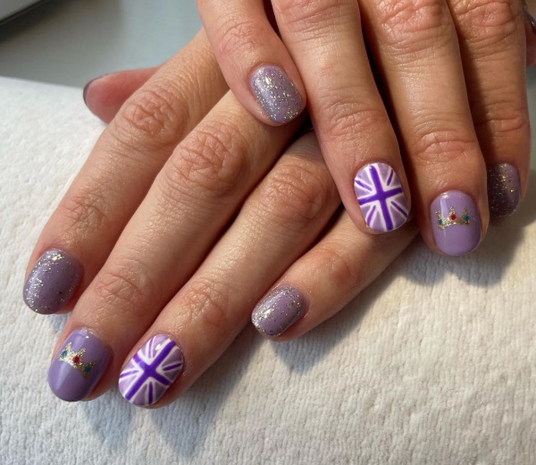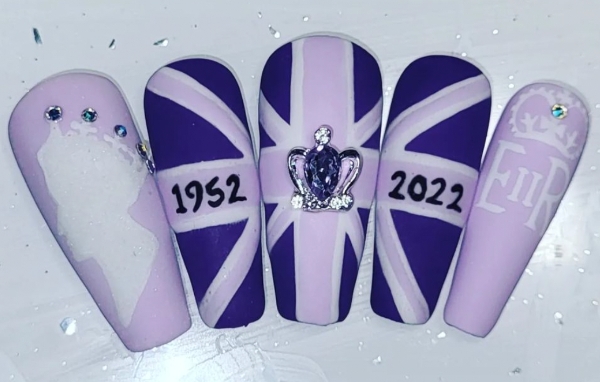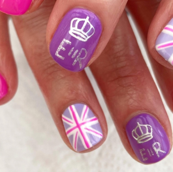 Red, white and blue has been everywhere in the run up to the Jubilee celebrations… But so has purple! The Platinum Jubilee emblem is marked with platinum and purple. It’s the colour of royalty – and the new Elizabeth line – and has been appearing in plenty of nail designs, too. Check out our roundup of Jubilee nails with pops of purple below!