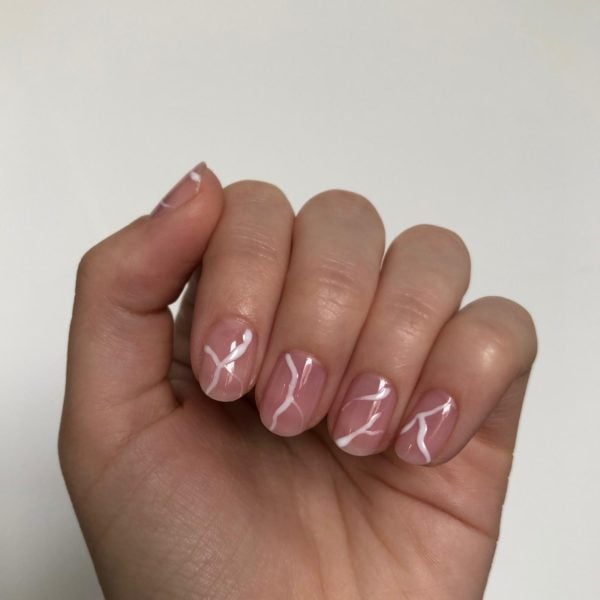 Using a fine liner brush, randomly paint thin ‘wiggly’ lines of GELLUX Purely White along the nail. Do not cure.