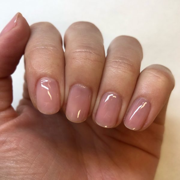 Prep the nails and file to a round shape. Push back the cuticle using the Salon System Cuticle Handy Manicure Tool, and remove the cuticle using the GELLUX Erase Cuticle Remover and cuticle clippers. Buff the nail plate and cleanse nails with GELLUX Prep + Wipe. Apply GELLUX Fast Bond followed by one coat of GELLUX Cover Pink Base Coat and cure for 60 seconds.
