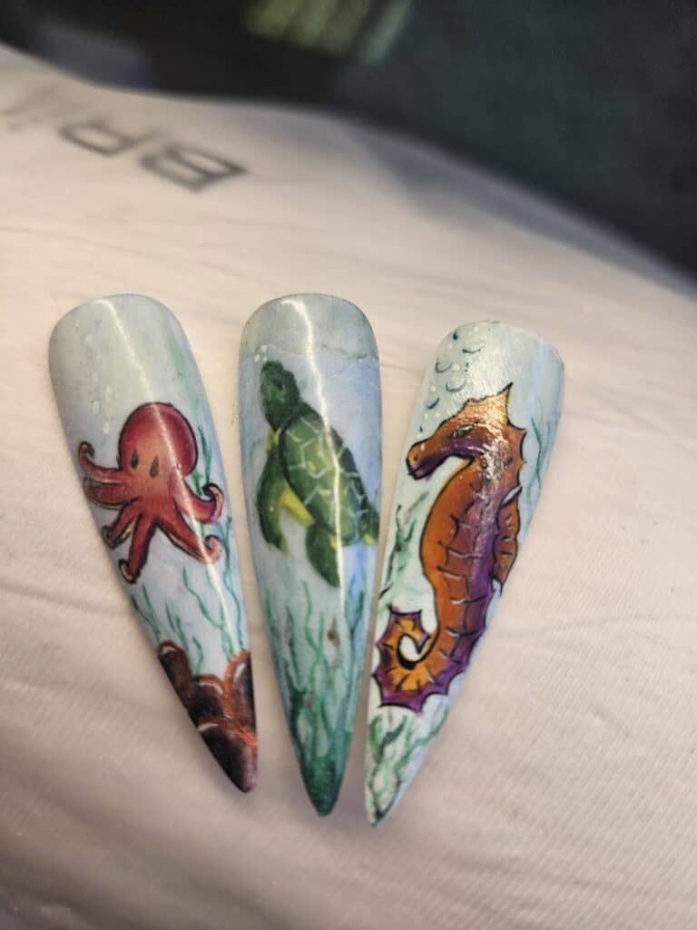Check out entries to the 16 July 2025 nail art challenge from Scratch, in which techs were tasked with creating a design to fit the theme: Marine Manis.