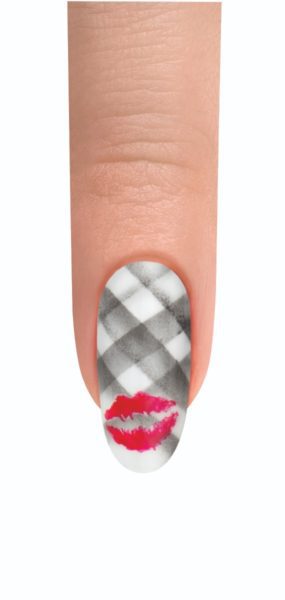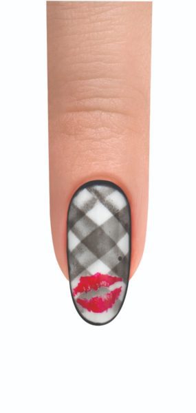 Using A Kiss From Marilyn and a Mini Striper Brush, paint lips near the free edge.