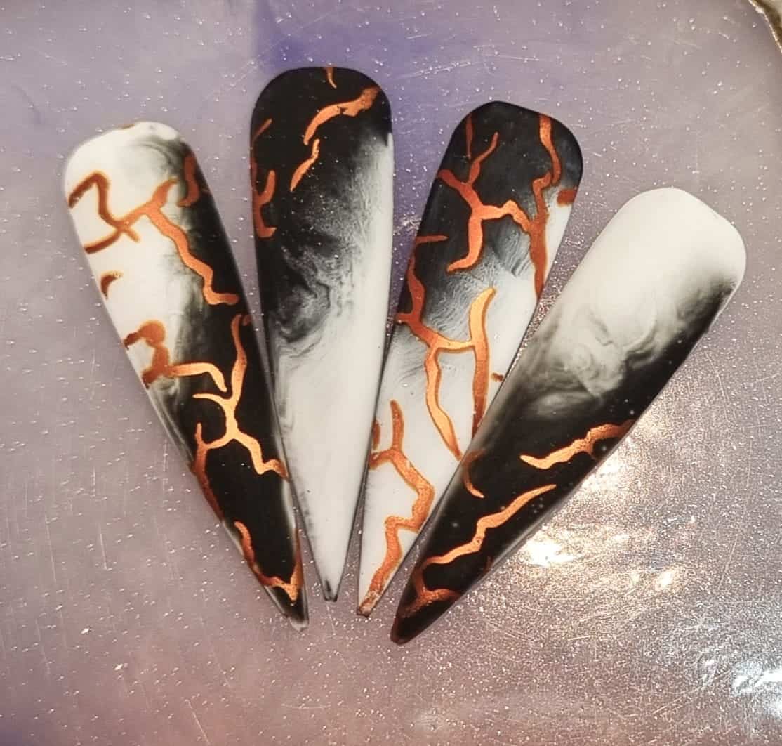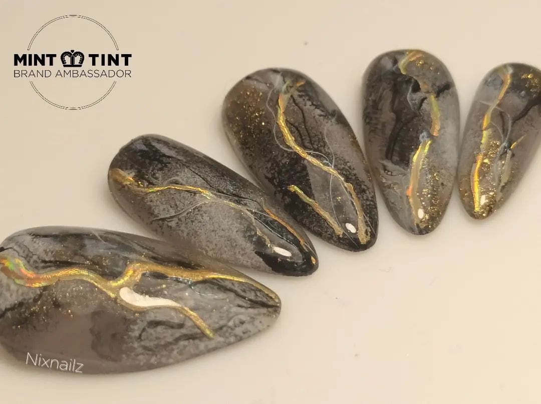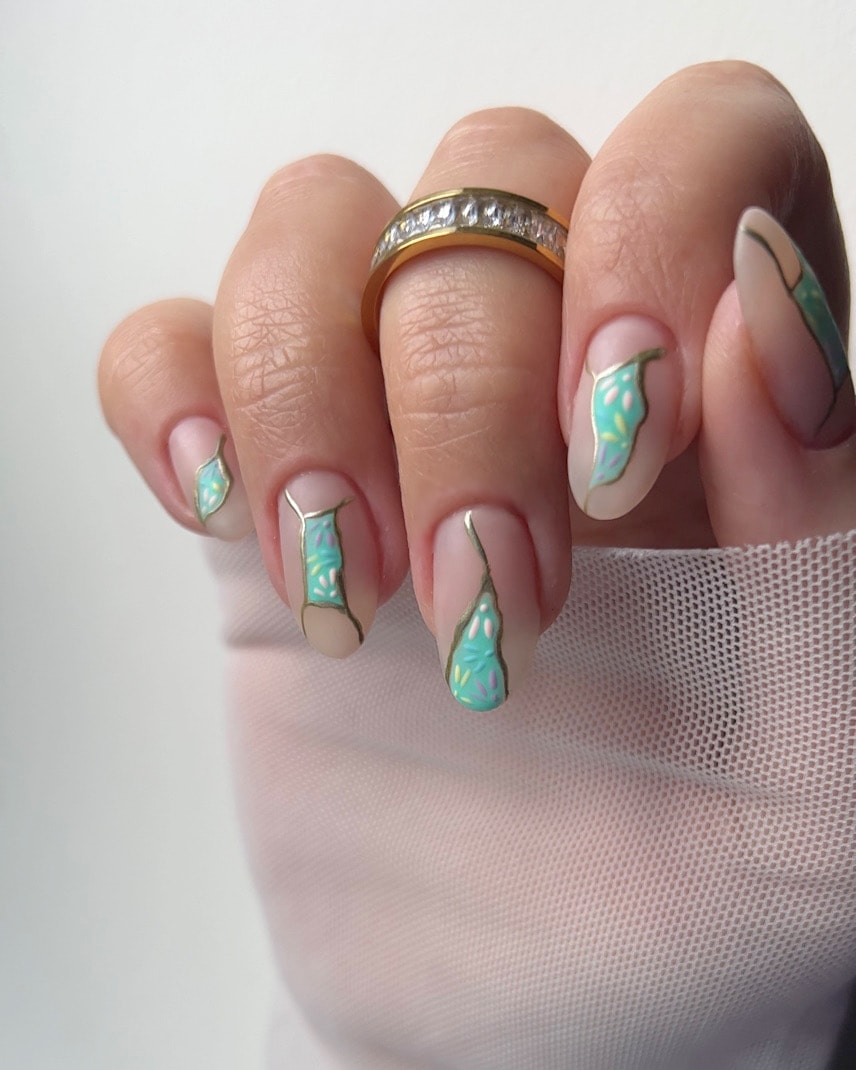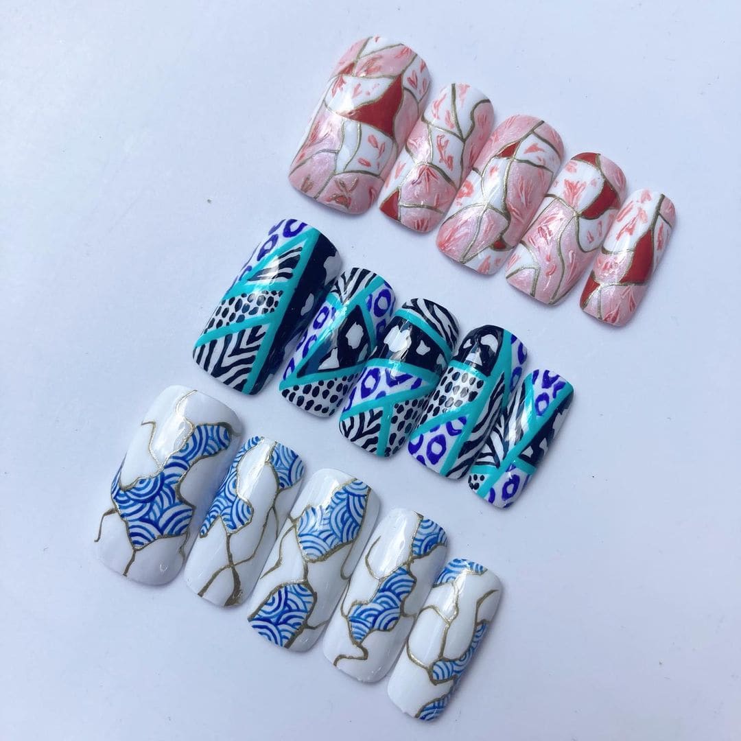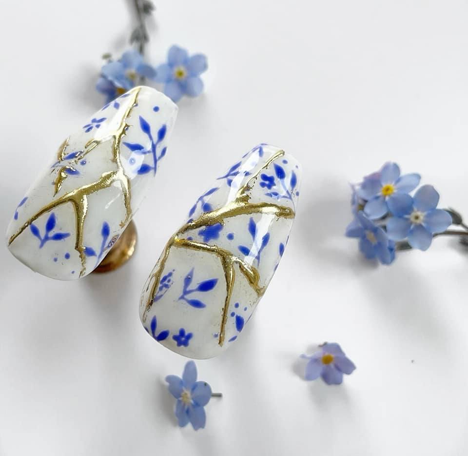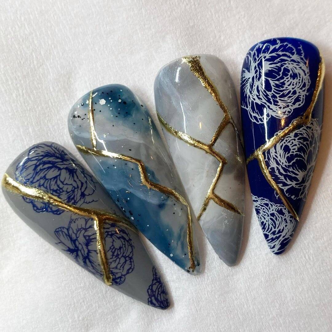 Check out entries to the 27 April nail art challenge from Scratch, in which techs were tasked with creating nail designs inspired by Kintsugi, the centuries-old Japanese art of joining broken pottery pieces back together with gold. The technique promotes finding the beauty in imperfections.