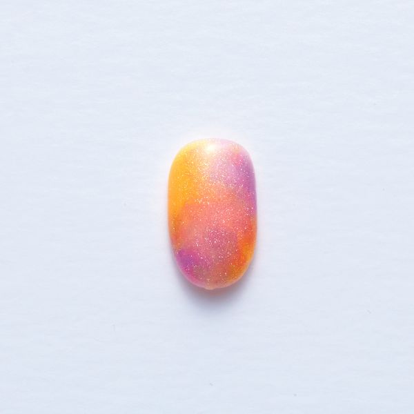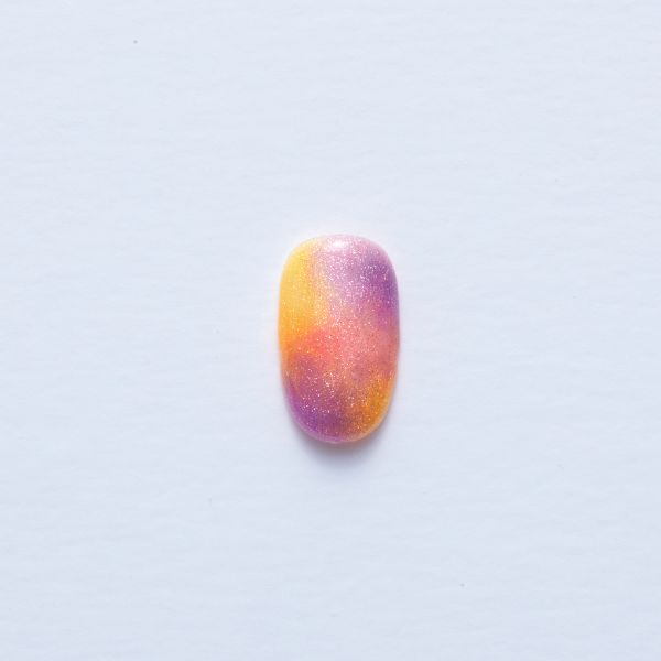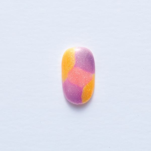Randomly apply gel polish shades onto the nail in Yellow, Purple, and Pink.