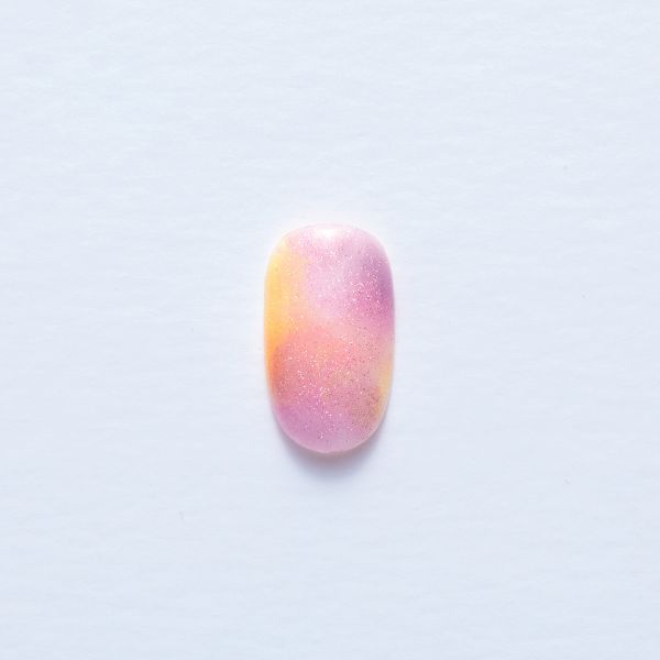 The director of Avelitte Nail Salon, Korea, created the style using: Nail File, Base Gel, Non-wipe Top Gel, Non-wipe Clear Gel, Glitter Gel (Yellow, Purple, Pink), Painting Gel (White), Gel Brush (Ombré, Round), Gel Cleanser, Studs, Tweezers and an LED Lamp.