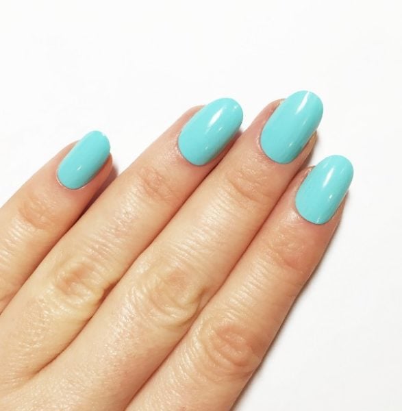Paint all 10 nails with two coats of I Believe in Manicures by OPI.