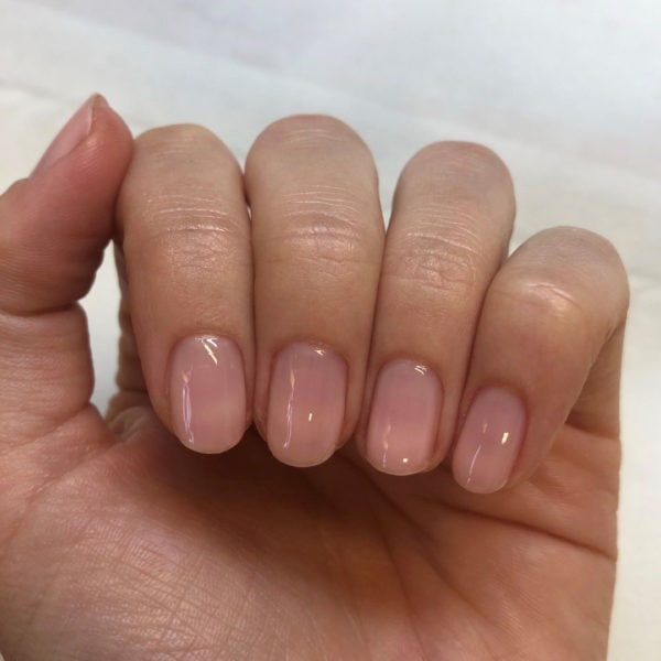 Start by prepping the nails and filing to a round shape. Push back the cuticle using the Salon System Cuticle Handy Manicure Tool, and remove the cuticle using the GELLUX Erase Cuticle Remover and cuticle clippers. Buff the nail plate and cleanse nails with GELLUX Prep + Wipe. Apply GELLUX Fast Bond, followed by one coat of GELLUX Light Pink Builder, and cure for 60 seconds.