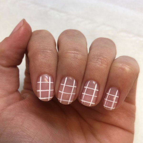 Next, using the same shade, paint another two lines horizontally, then cure for 30 seconds.