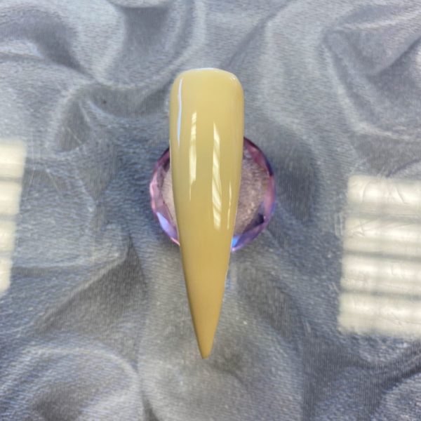 Apply Halo Gel Polish Base Coat and cure, followed by two coats of Halo Gel Polish in Primose (curing between each coat). Next, apply Halo Non Wipe Top Coat.