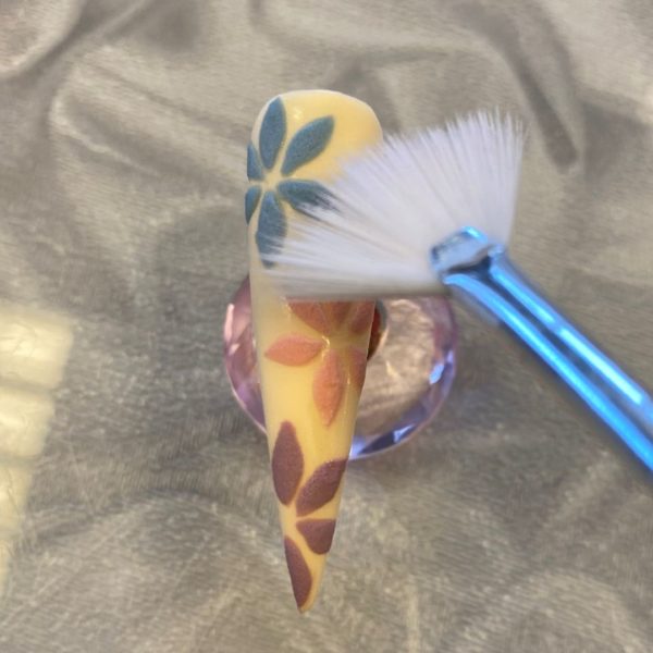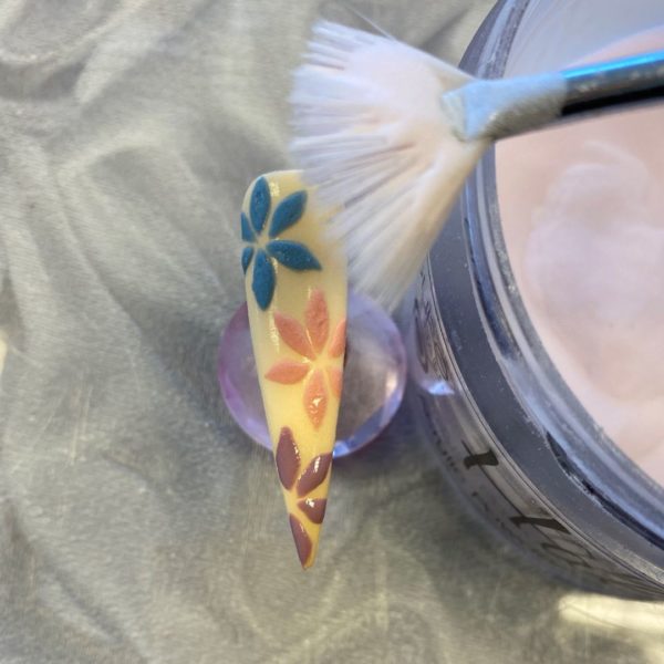 Dust Halo's Pink acrylic powder onto the petals to create a matte 3D effect. Cure.