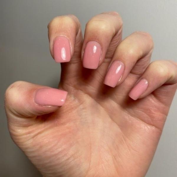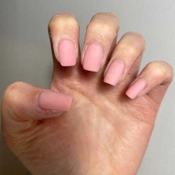 Apply two thin layers of GELLUX Builder Gel Rose Pink, curing each layer for 60 seconds. Wipe off any sticky excess with GELLUX Prep & Wipe then lightly buff nails for a matte look, using a nail brush to remove any dust.