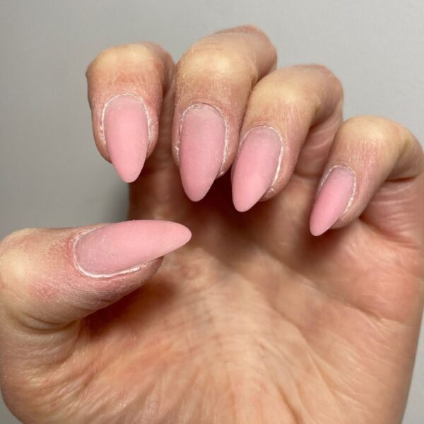 Prep the nails and push back the cuticles. Shape and buff the natural nail bed with a grey and yellow buffer. Dust and wipe the nails with Gellux Prep + Wipe. Apply a thin layer of Gellux Fast Bond.