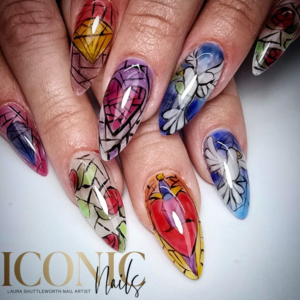 Check out entries to the 23 April 2025 nail art challenge from Scratch, in which techs were tasked with creating a design to fit the theme: Stained Glass.