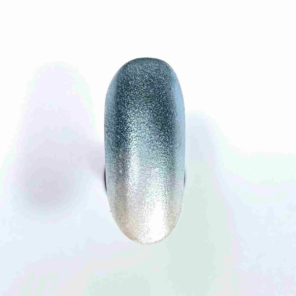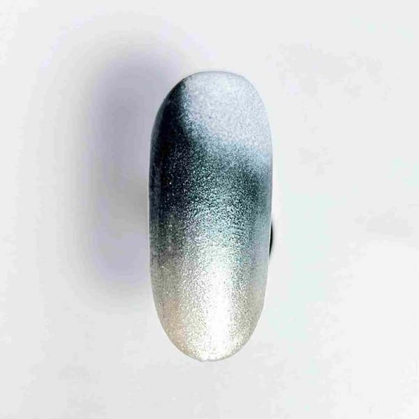To create a pale base, use Mini Gel Polish in 220 White and cure. Using the Moyra Effects Brush, dab Pigment Powders in shades 37 and 51 onto the tacky layer.