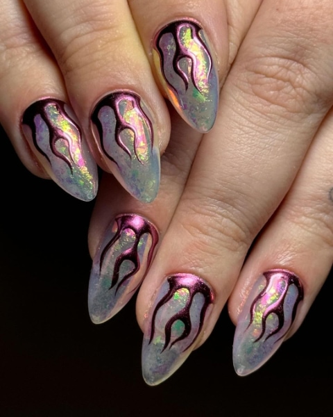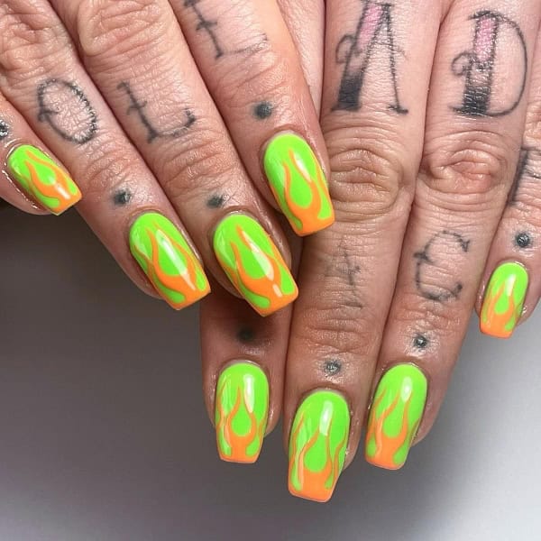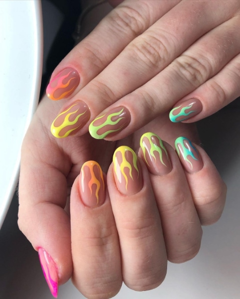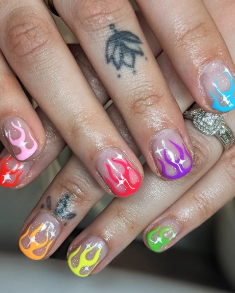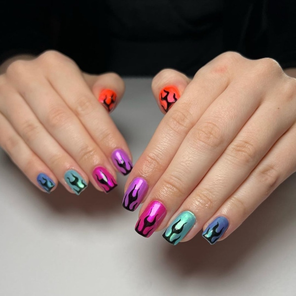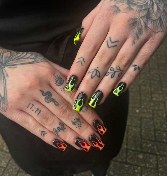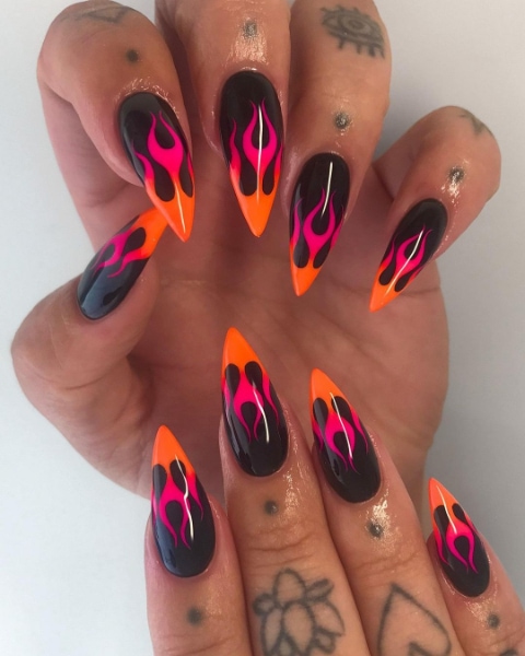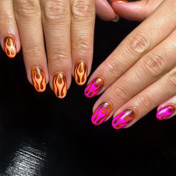 It’s getting hot in here! Add an extra spark to your nail styling with flame art. Check out our roundup of fiery nail designs below…