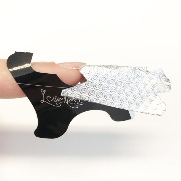 The foils can be secured onto the form with a thin double-sided tape that is supplied with the forms.