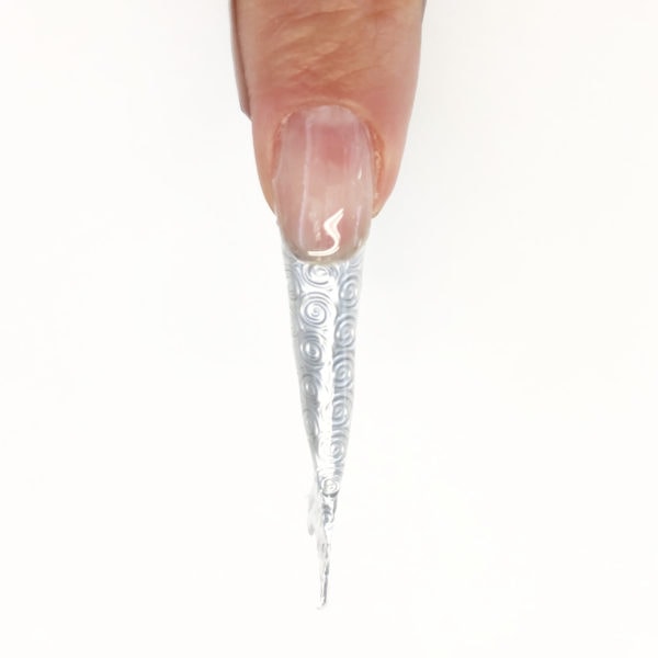 In order to create the structure, use Glass Foils under you extension. These can be used in their full length for longer nails or cut in half for shorter nails.