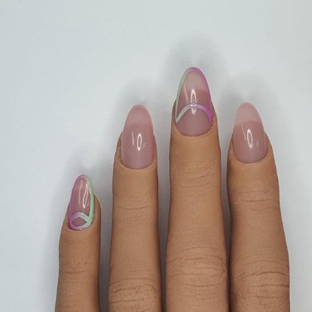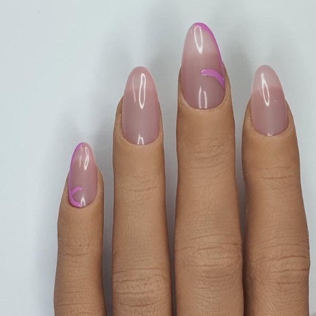 Now, using GELLUX Glamping, do the same on the same nails and then blend the two colours in a sweeping motion to create an ombre effect. Once happy, cure for 30 seconds.