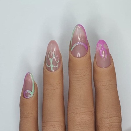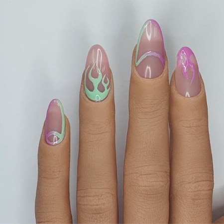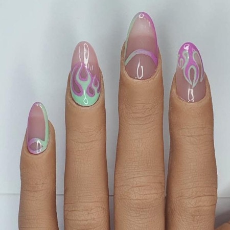 Outline each flame in the opposite colours using a small detailing brush and cure for 30 seconds.