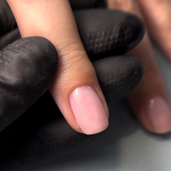 Prepare nails by pushing back cuticles, trimming the excess, shaping the free edge, and buffing the nail plate with a white block. Dust well and wipe thoroughly with GELLUX Nail+File Spray. Apply GELLUX Fast Bond, let dry for 30 seconds and then, apply 2 coats of GELLUX Warm Pink Builder Gel, curing for 60 seconds in between layers.